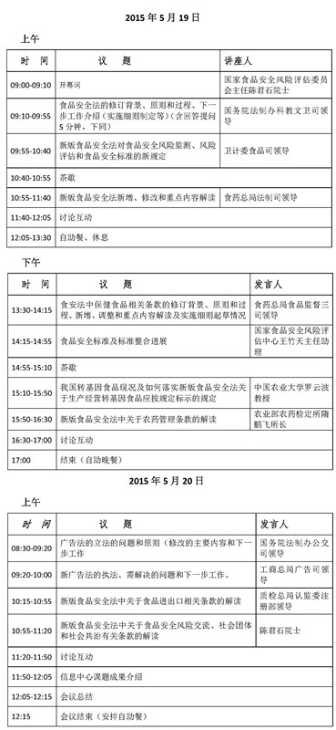 为了宣传贯彻《中华人民共和国食品安全法》(以下简称“食品安全法”)和《中华人民共和国广告法》(以下简称“广告法”),科信食品与营养信息交流中心(China Food Information Center,CFIC)拟定于5月19-20日在北京召开“《食品安全法》和《广告法》培训交流会”,届时将邀请有关部门领导和专家对《食品安全法》和《广告法》进行科学解读。现将会议有关事项通知如下: